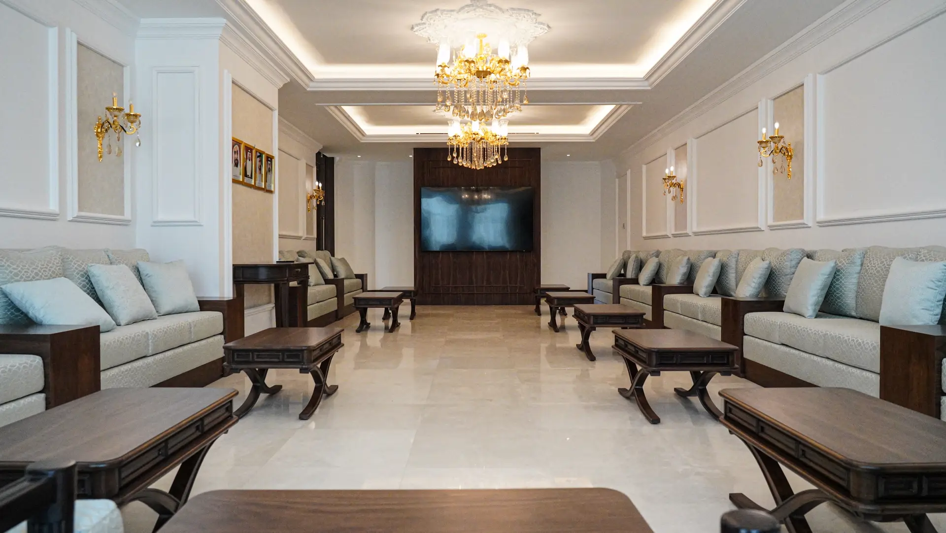 The spatial planning was meticulously tailored to accommodate both dynamic daily operations and prestigious diplomatic gatherings. The layout features a seamless progression of spaces: from sleek, contemporary waiting lounges and bright, glass-lined corridors, to a grand, classically inspired VIP Majlis. Clean, linear architectural lighting is used strategically in the modern corridors to guide movement and enhance the sense of scale, while the layout ensures strict privacy and smooth operational flow between public reception zones and confidential administrative areas.