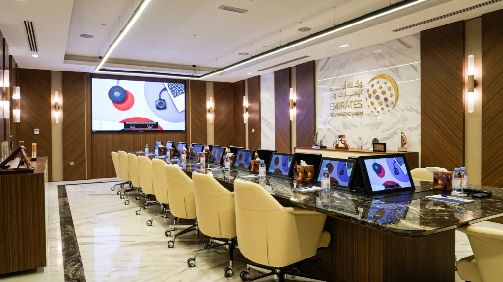 Monolith delivered a refined and functional interior transformation for the Emirates News Agency (WAM), seamlessly aligning aesthetic elegance with operational excellence.
