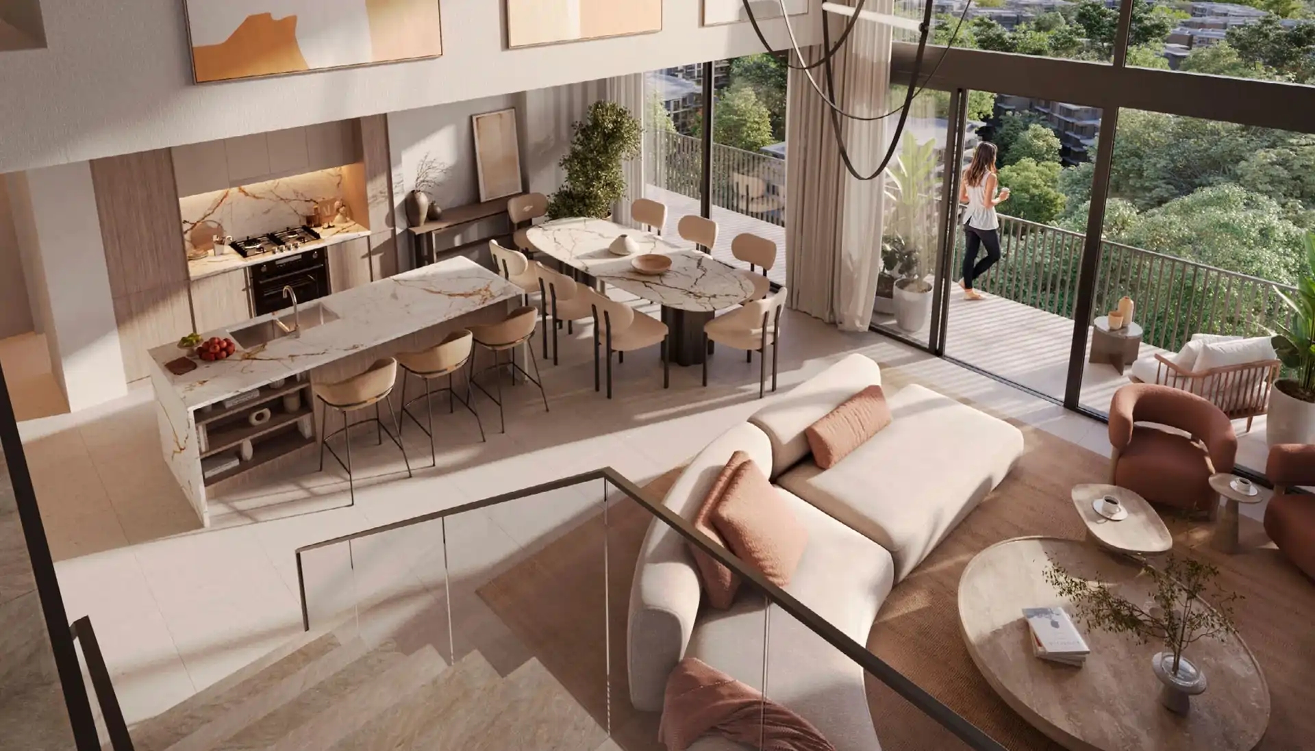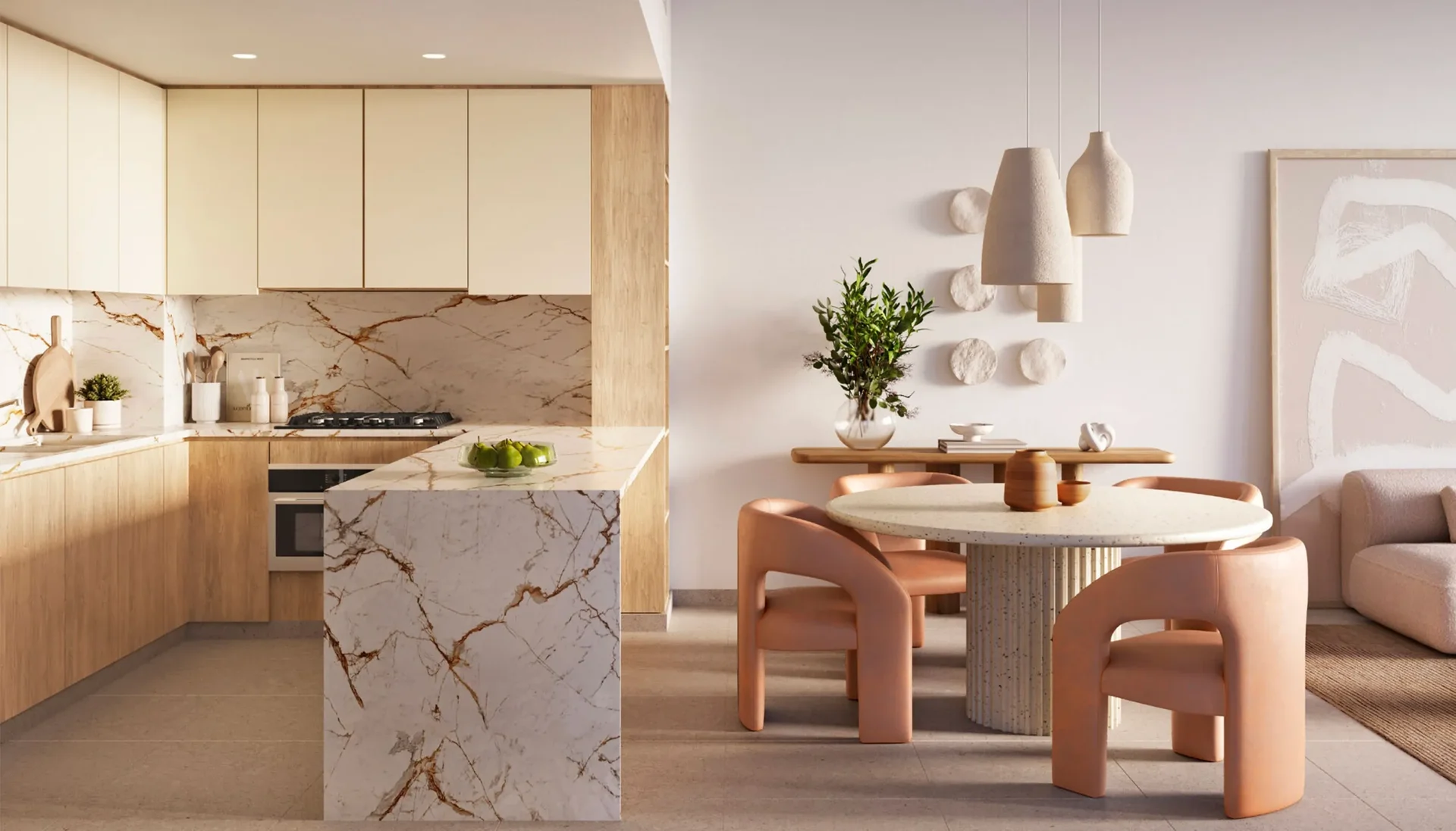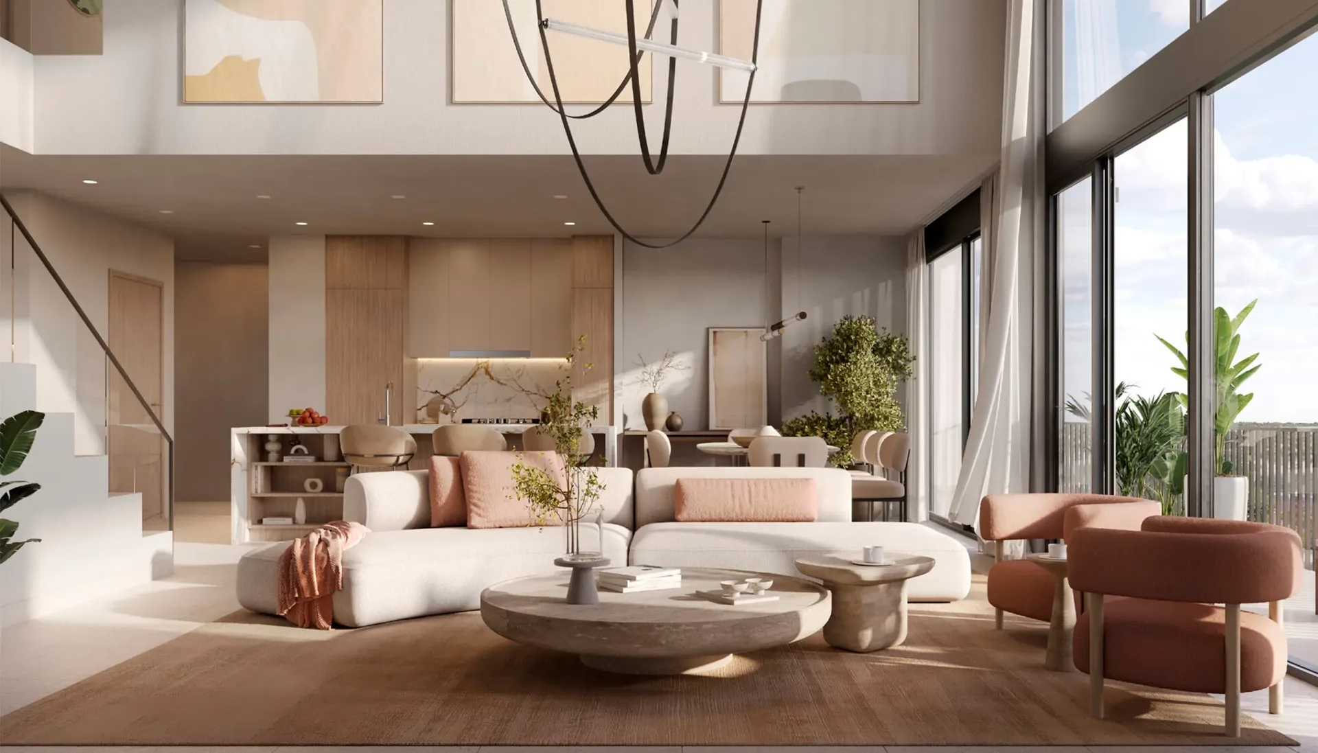 Ghaf Woods is conceived as a biophilic urban sanctuary a community where architecture, landscape, and interior design work in harmony to bring residents closer to nature. Monolith's joinery scope was approached with this philosophy at its core: every cabinet, every door, every built-in unit was designed and crafted to complement the development's organic material palette of natural wood tones, warm neutrals, and tactile finishes that echo the surrounding landscape.